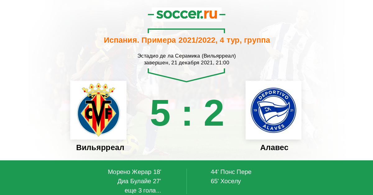 Вильярреал победит в результативном матче. Думаю уже в первом тайме команды обменяются голами. У хозяев набрал форму Жерар Морено, он забьет в этом матче, а у Алавеса жду гола от Хоселу.