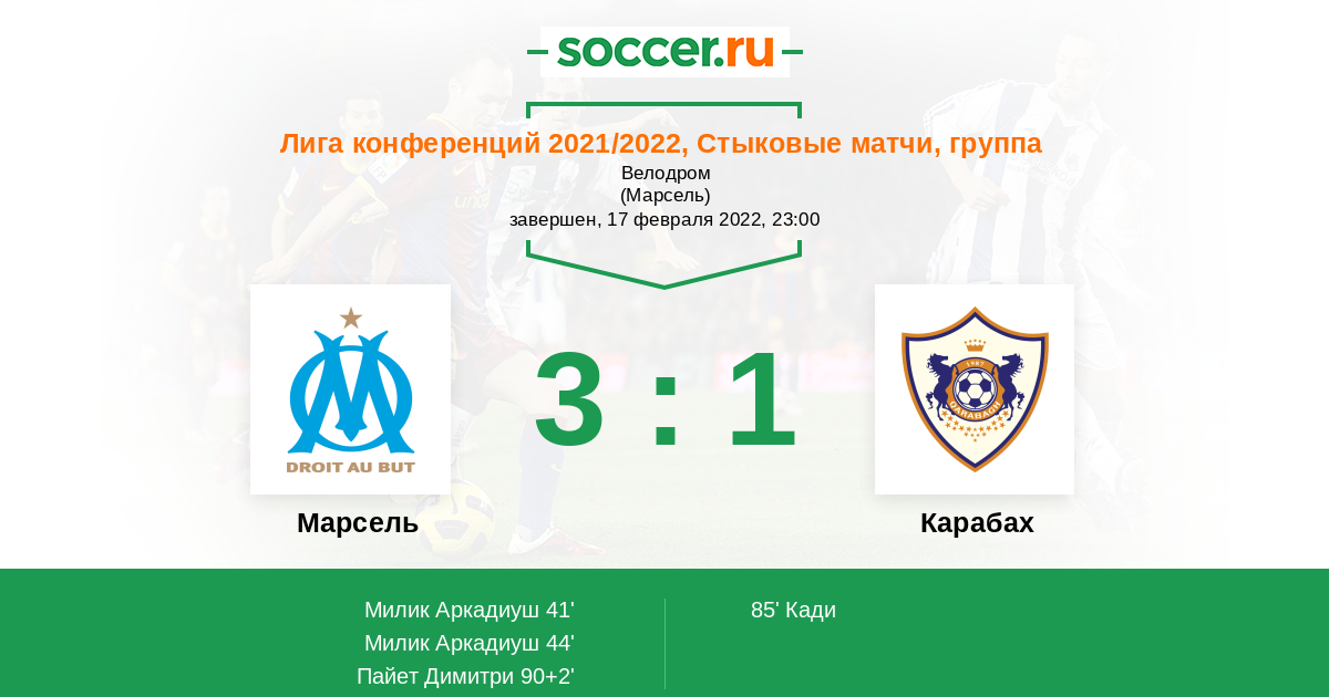 Но Марсель явно не тот соперник, с которым Карабах мог бы играть на равных Марсель победит...