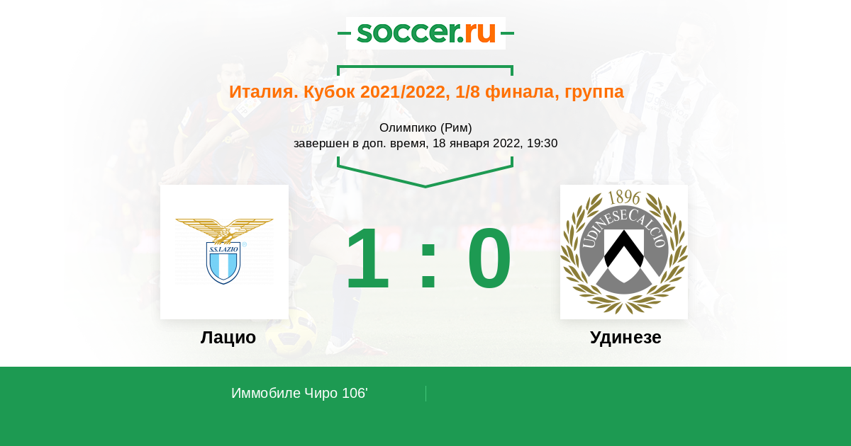 Обе команды играют очень интересно. Во всех матчах из последних пяти кроме игры с Интером Лацио забивал обязательно 3. У Удинезе за двумя подряд победами 4:0 и 4:0 последовали два поражения с общей разницей голов 2:8. Удинезе сейчас выглядит крайне слабо и чувствует себя гораздо хуже Лацио. Так что поставлю на то, что римляне снова победят, забив 3, но на этот раз в кубке. Ну и мяч престижа гости забьют. 3:1