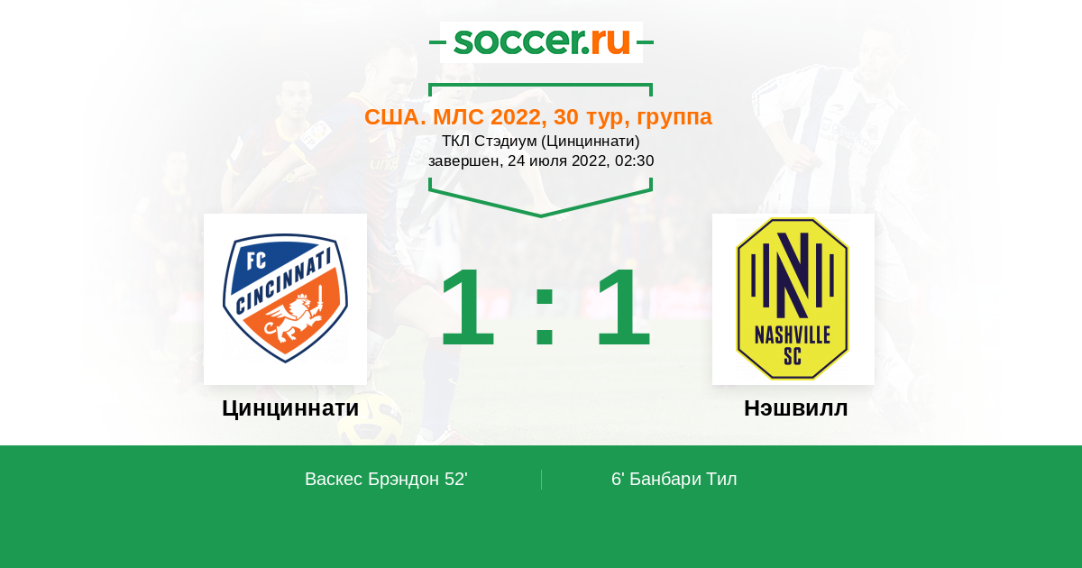 В сегодняшнем матче в американской МЛС между клубами Цинциннати и Нэшвилл рискну предположить победу хозяев потому, как у них более эффективная атака, плюс на их стороне поддержка местных фанатов .