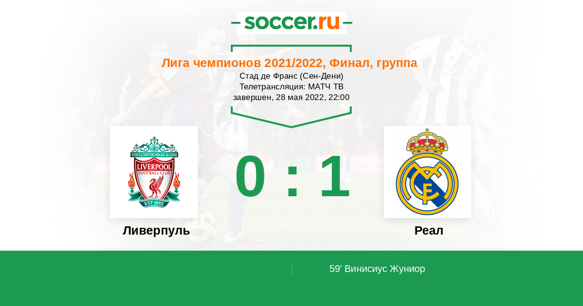 Всех болельщиков Реала с победой, сам болел за Реал. Но вообще то Ливерпулю сегодня просто не везло, такое бывает. Лучше бы было ,если бы основное время закончилось в ничью.