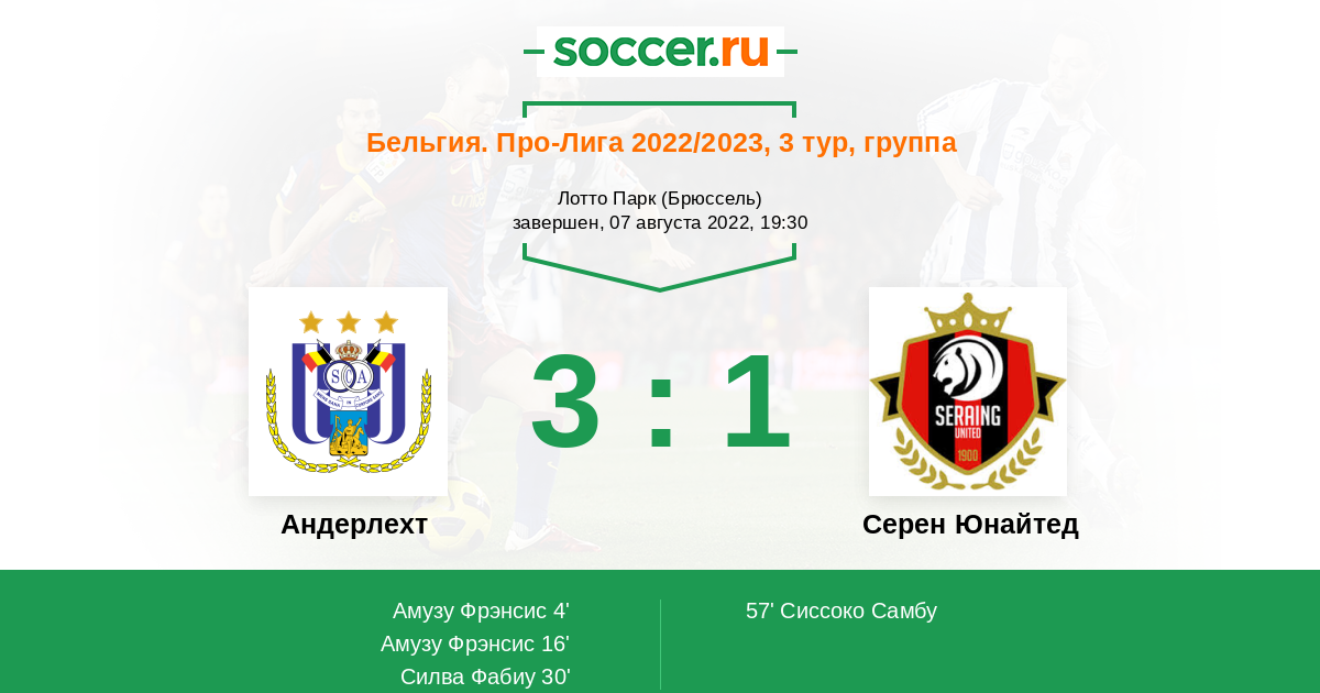 3-0 в прошлом сезоне, тоже где то в его начале обыграл новичка прошлого сезона на своем поле. Думаю, что сейчас расклады не поменялись. Свое поле, класс, исполнительское мастерство и опыт, а также не самые уверенные действия Серена на острие должны помочь брюссельцам одержать победу в качестве фаворита через такой низ. 2-0, 3-0 такому матчу подходит идеально - все же на данный момент команды с разных планет развития и уровня.