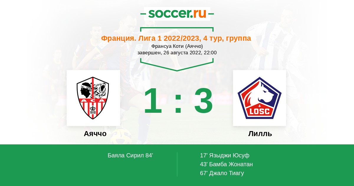 В этом матче между командами Аяччо и Лилль ожидается интересная и результативная игра. Каждой из этих команд нужно исправлять ситуацию в турнирной таблице чемпионата. Прогноз на этот матч обе команды забьют. Удачи