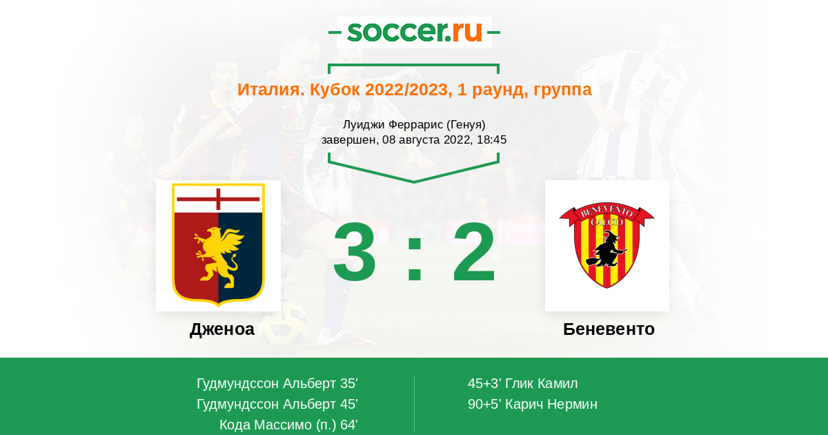 Я думаю что в этом противостоянии более чем явного фаворита на победу нет . Команда хозяев поля Дженоа из Серии А упала в Серию В , где сейчас и играет с командой гостей Беневенто . Так что матч будет очень боевой и скорее всего с забитыми мячами с обеих сторон.