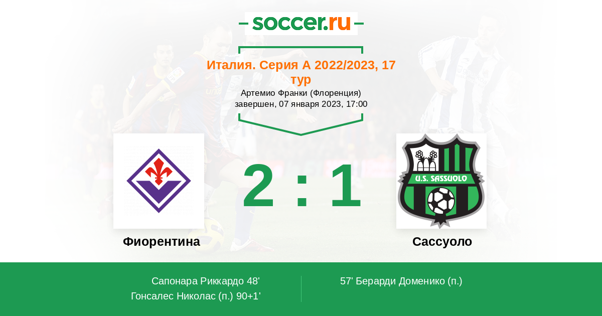 Если в Фиорентине набирает постепенно форму Артур Кабрал, то Пинамонти в Сассуоло никак не может обрести себя. Если у них пойдет, то стоит ждать очень результативную игру. Но для голов должно даже хватить усилий связок Берарди-Льоренте и Иконе-Сапонара.