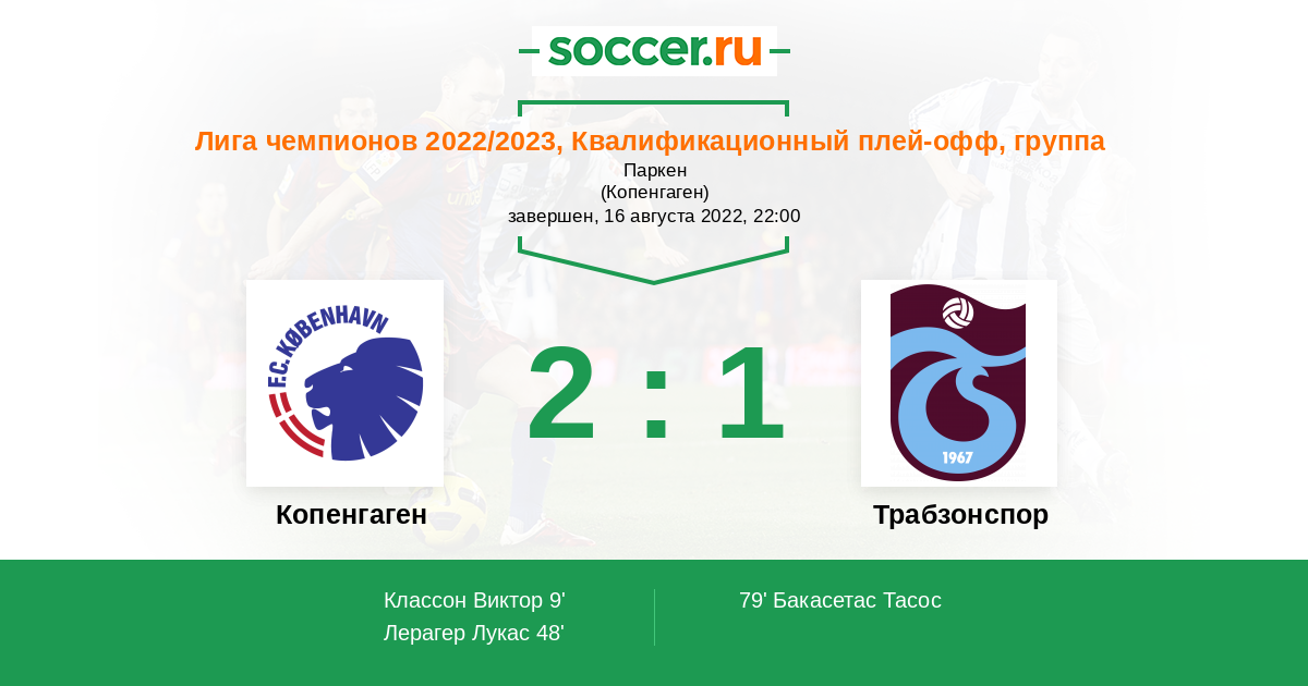 Я думаю что в этом противостоянии более чем явного фаворита на победу нет . Но на мой субъективный взгляд на данный момент времени команда хозяев поля Копенгаген наврядли выйдет победителем из этого противостояния с турецким Трабзонспором .