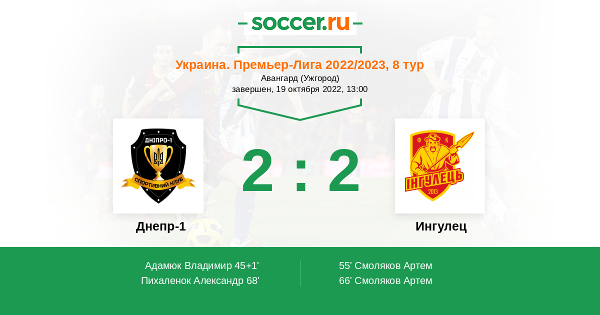 В предстоящем матче 8 - го тура украинской Примьер - Лиги между командами Днепр - 1 и Ингулец , более чем явным фаворитом на победу является команда хозяев Днепр - 1.