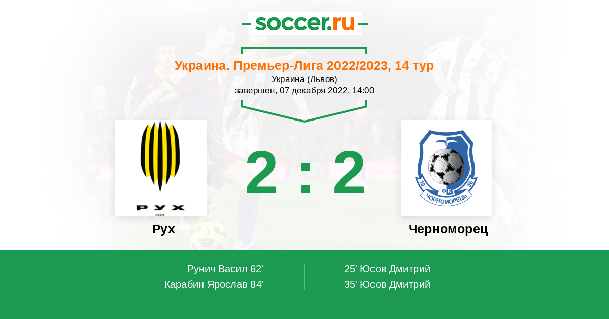 Я думаю что в этом противостоянии более чем явным фаворитом на победу выглядит команда хозяев поля Рух . Но и команда гостей Черноморец вполне возможно сможет зацепиться за очки . Минимальная победа хозяев поля или ничья .