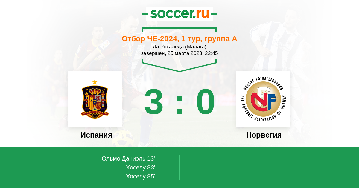 Слишком уж дорого стоит гол Норвегии, чтобы пройти мимо него. Все же и у Испании куча изменений, новый тренер и изменения в составе, тогда как Норвегия обладает мощной линией атаки, один Холланд чего только стоит, тем более Эрлинг раззабивался в последнее время. Ну и в отсутствие Эрлинга, без него есть опытный Кинг, Сорлот из Сосьедада, Эдегор из Арсенала. В отборе к Евро 2020 норвежцы дважды испанцам забивали (1-2, 1-1), а сейчас основа для гола в ворота "Фурии Рохи" куда более прочная, чем несколько лет назад.