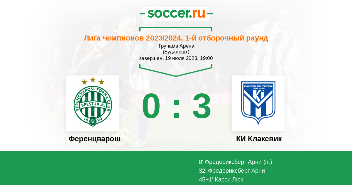Ференцварош дома играет обычно в сухую победу, особо не пропускает, поэтому КИ Клаксвику забить в этом матче будет трудно, а возможно даже и не возможно)