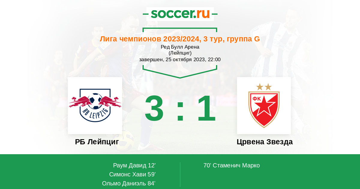 В очередном туре Лиги Чемпионов между командами РБ Лейпциг и Црвена Звезда рискну предположить победу хозяев, потому как на их строне поддержка местных болельщиков, плюс их рейтинг УЕФА выше соперников.