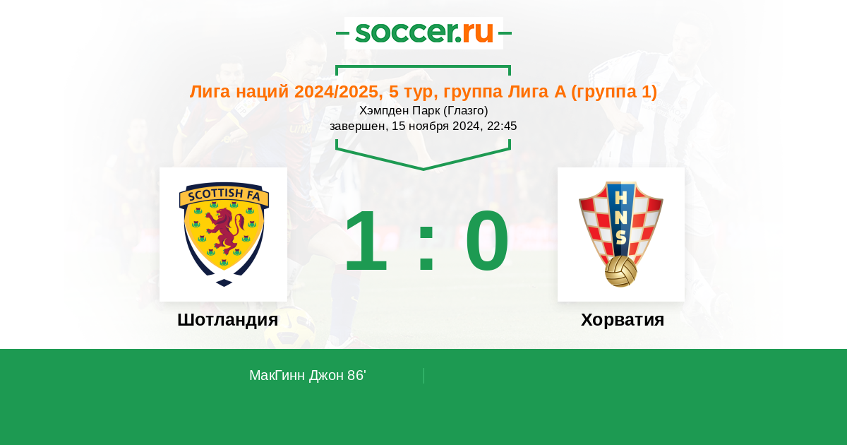 Для того чтобы продолжить бороться за победу в группе сборной Хорватии в гостях необходимо обязательно побеждать сборную Шотландии. Имея более результативную атаку и надёжную оборону гостям по силам добиться победы.