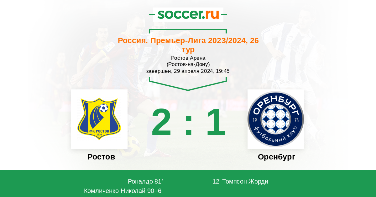 Ростов и Оренбург уже бились друг с дружкой под знаменем теперешнего регулярного соревнования - в рамках первого круга, только на территории уральцев. И тогда победитель не выявился - в результате голевой ничьи 1:1. Также стоит отметить, что "газовики" не слетают ростовчанам уже в 3-х личных рандеву подряд. В связи с чем жду и здесь положительную игру от сверх заинтересованного Оренбурга, вместе со ставкой на Х2, за очень привлекательный коэффициент.