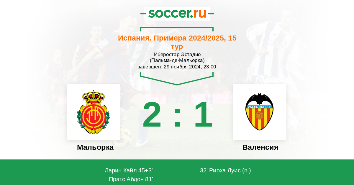 Команда хозяев выглядит несколько сильнее и предпочтительнее своих соперников, имеет больше шансов одержать победу на домашнем стадионе над гостевым коллективом и вряд ли при поддержке своей публики Мальорка позволит Валенсии выиграть