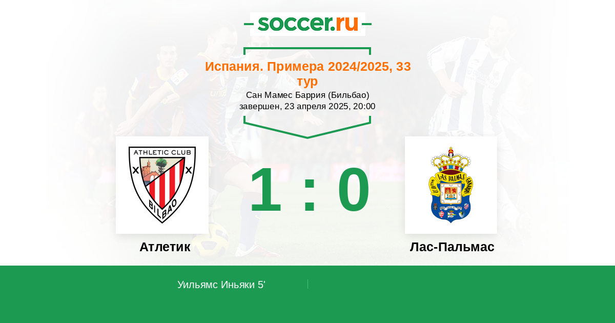 В матче тридцать третьего тура испанской Примеры встретятся команды Атлетик Бильбао и Лас Пальмас, Атлетик конечно фаворит встречи с запасом, но редко когда им удаётся своих сегодняшних гостей разгромить, но думаю в этот раз Атлетик сможет забить два или больше мяча