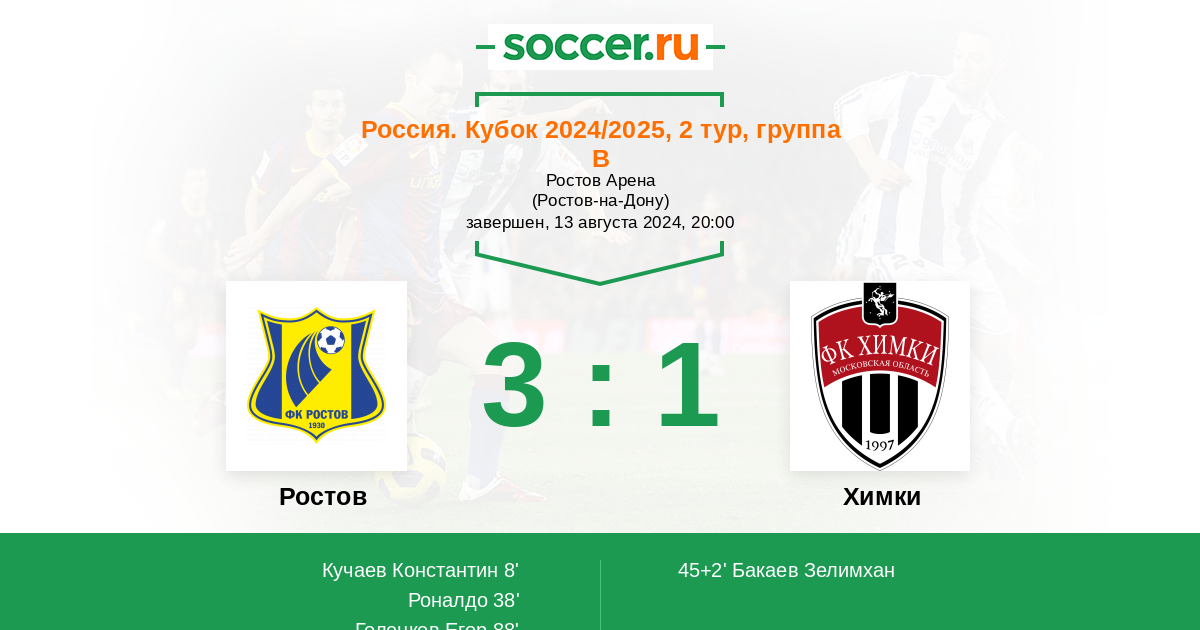 Мне кажется, что Ростов фаворит в этой встрече. Химкам нужно думать о чемпионате и по хорошему лучше сливать кубок, так как финальная часть кубка будет мешать на финишной прямой чемпионата. Предполагаю второй состав от Химок и небольшую ротацию от Ростова