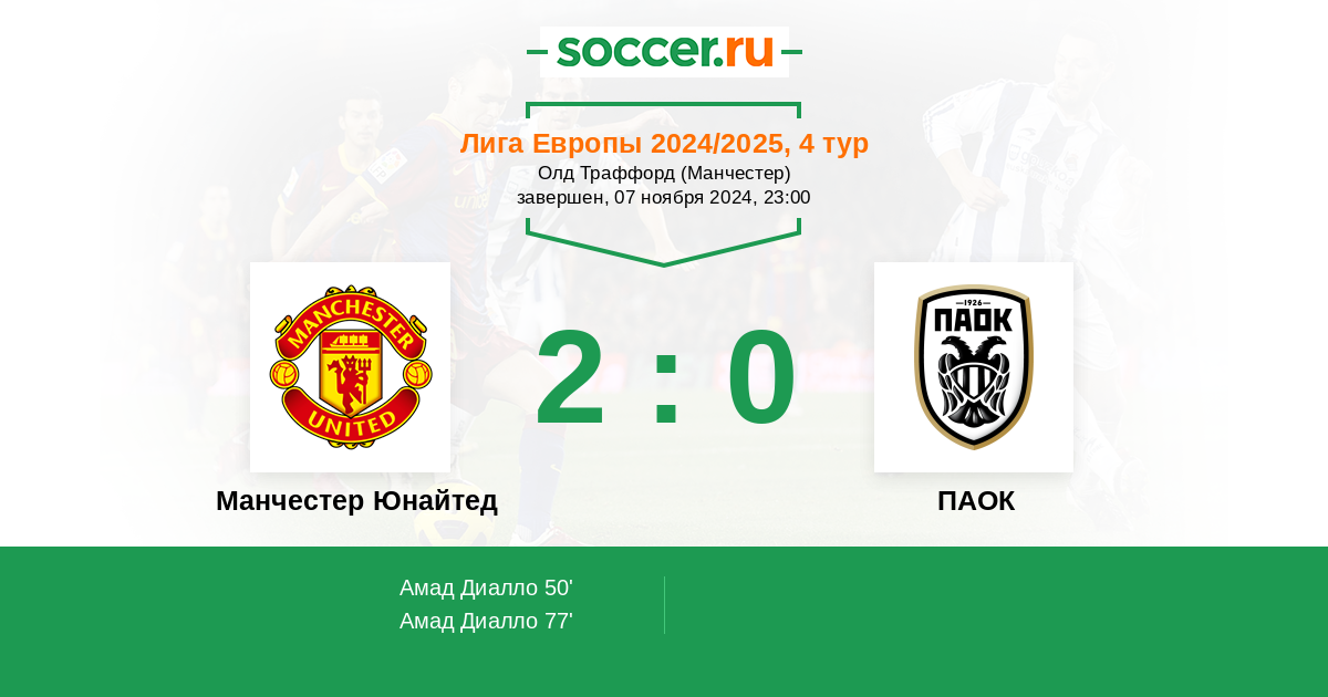 Манчестер Юнайтед - ПАОК