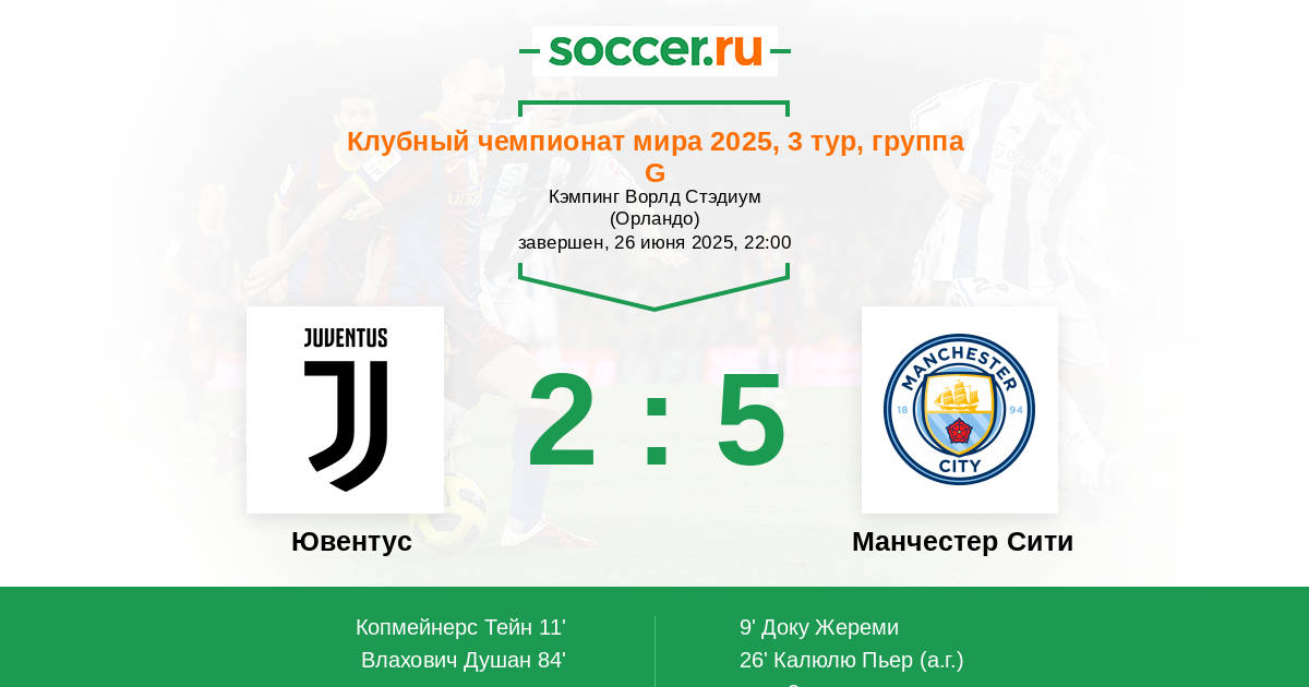 В предстоящем матче 3 - го тура нового клубного чемпионата мира по футболу 2025 года между командами Ювентус Турин Италия и Манчестер Сити Англия , фаворитом на победу является команда Манчестер Сити. Но думаю, что Ювентус будет сушить игру. Им ведь ничья достаточно.