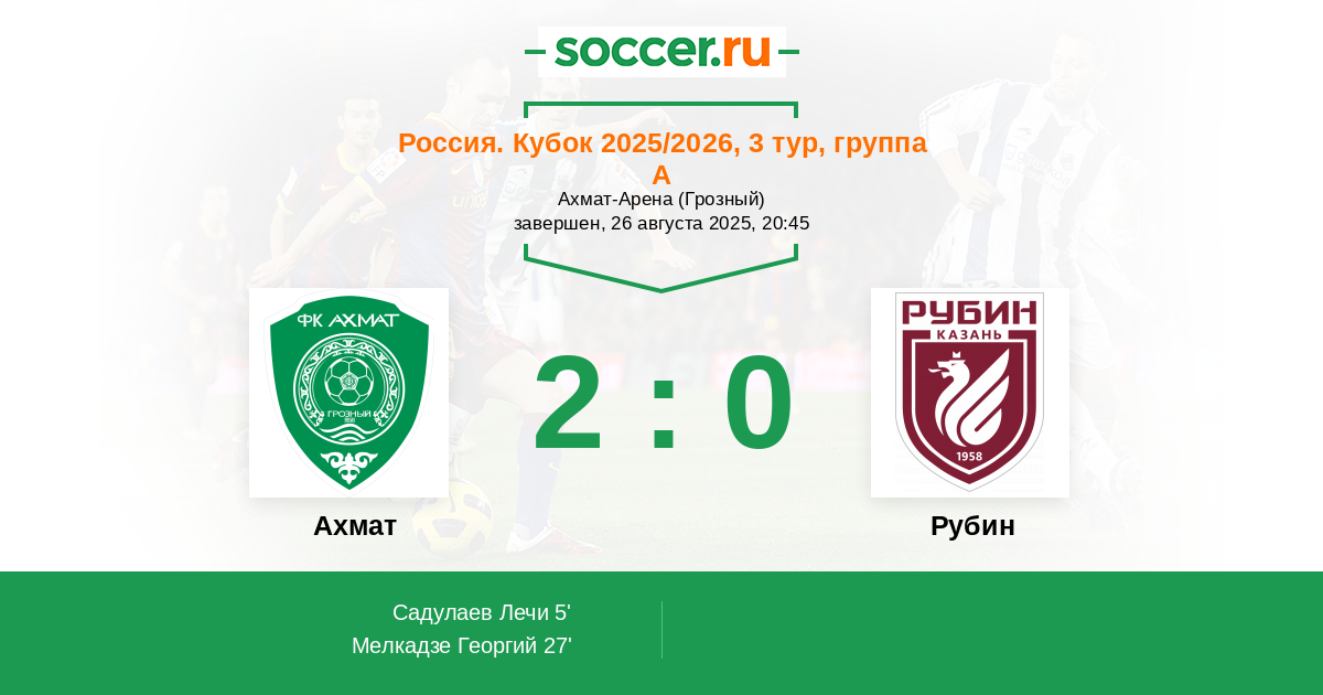 В предстоящем матче 3 - го тура Кубка России в группе А между командами Ахмат Грозный и Рубин Казань , моим фаворитом на победу является команда хозяев Ахмат Грозный .