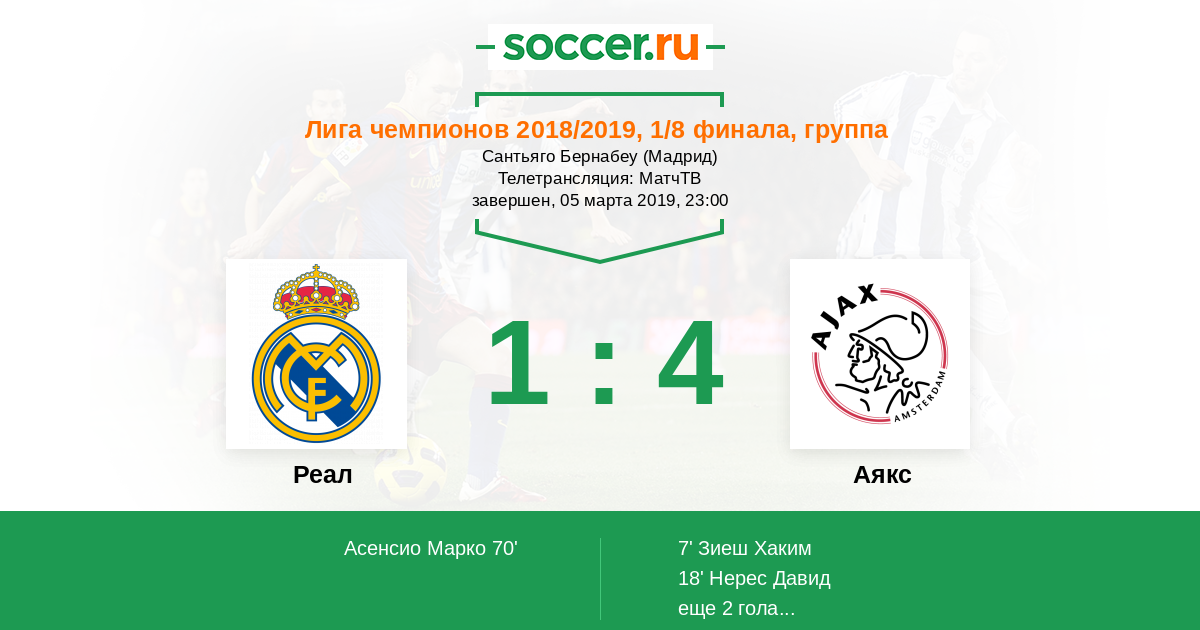 Аякс интересен, но без Реала, ЛЧ будет пресным турниром...