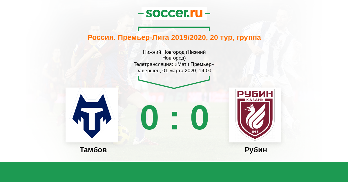 После первых 15 минут Тамбов всей командой встал во вратарской вместе с вратарём.... Рубин не умеет таких обыгрывать. Пропустит в шальной контратаке че нить.