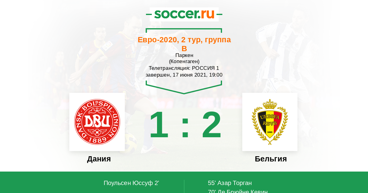 Ещё один интересный матч на турнире. Очень понравились датчане, особенно в первом тайме. Ну а бельгийцы во втором тайме показали, что такое класс команды и игроков, почему их считают одними из главных фаворитов Евро.