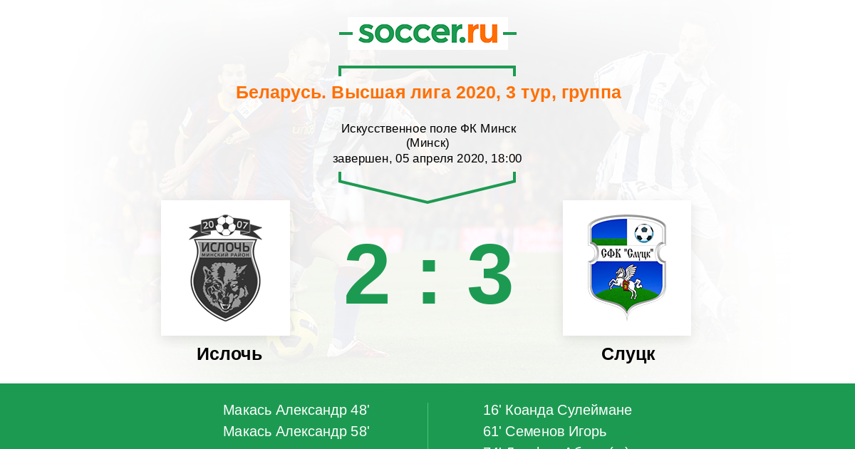 Янсане забьет у Ислочи. Сердюк забьет за Слуцк. Сыграют в ничью 1-1.