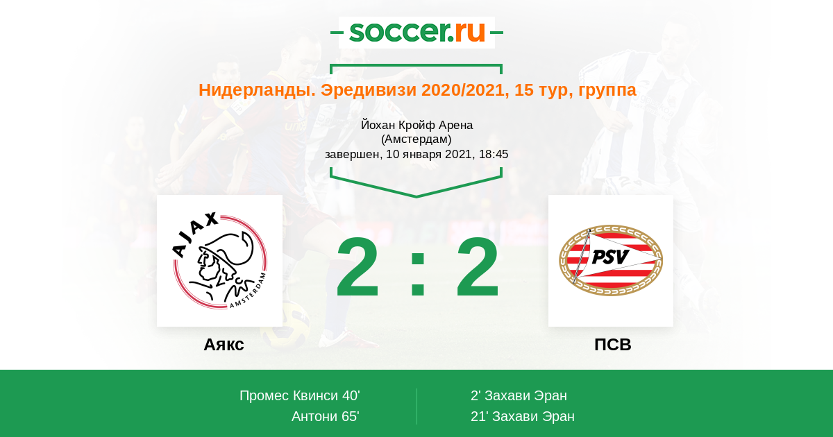 В 15-м туре Чемпионата Голландии встречаются лидеры дивизиона: Аякс принимает ПСВ. На настоящий момент хозяева опережают соперника лишь на одно очко: 34 очка против 33 при равенстве игр, и имеют куда более впечатляющую разницу забитых и пропущенных голов 52:10 против 33:11. ПСВ более уверенно провели последние встречи: 13 очков из 15 возможных по показателю формы (последние 5 игр), в то время, как Аякс ещё в начале декабря уступил Твенте и в крайней игре сыграл на выезде вничью с Виллем II . Однако, следует учитывать, что Аякс из 7 домашних игр сезона выиграл 6, а ПСВ грозным выглядит в домашних стенах, имея 100% показатель побед в домашних встречах, на выезде же ПСВ не столь уверен, в активе 3 победы, 3 ничьих и 1 поражение. Встреча достаточно принципиальна как с турнирной точки зрения, так и в качестве исторического противостояния, потому о недооценке или расслабленности речи быть не может и на первый план должен выйти класс команд, который, на мой взгляд, выше у Аякса. Добавлю, что ПСВ не очень удачно играет на поле Аякса, последняя ничья датирована 2016 годом, а победа 2015-м. Предположу, что в данной игре Аякс победит.