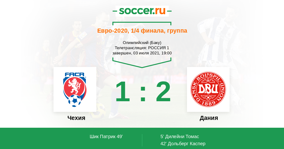 Дания невзрачно начала турнир, но только из-за того, что попадание Эриксена в больницу возложило на футболистов лишнюю эмоциональную нагрузку. Когда Кристиана выписали, скандинавы успели забить по четыре мяча и России, и Уэльсу. В составе сборной Дании по два гола на турнире забили Каспер Дольберг, Юссуф Поульсен и Йоаким Мехле. Сборную Чехии вряд ли можно назвать атакующей командой, но при этом чехи очень солидно реализуют свои моменты – не удалось забить только Англии, но ей на этом турнире еще никто не забивал. Дания часто ошибается в обороне, но при этом датчане сами очень много забивают, так что есть смысл рассчитывать на результативный матч.