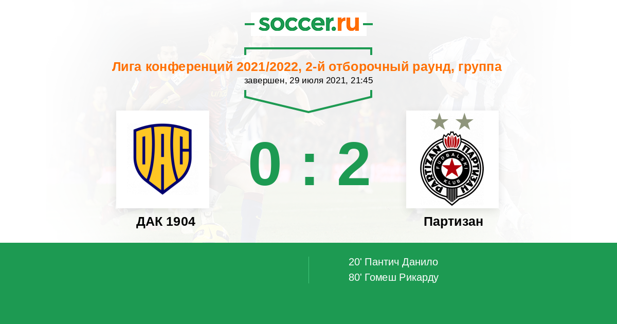 В первом матче “Партизан” по-казал уровень, до которого “ДАК” точно не допрыгнет. То, с какой легкостью нынешние гости доминировали над оппо-нентом дает уверенность в еще одной их победе. “ДАК” за матч сделал всего один удар в створ ворот оппонента, вряд ли газон родной арены изменит положение.