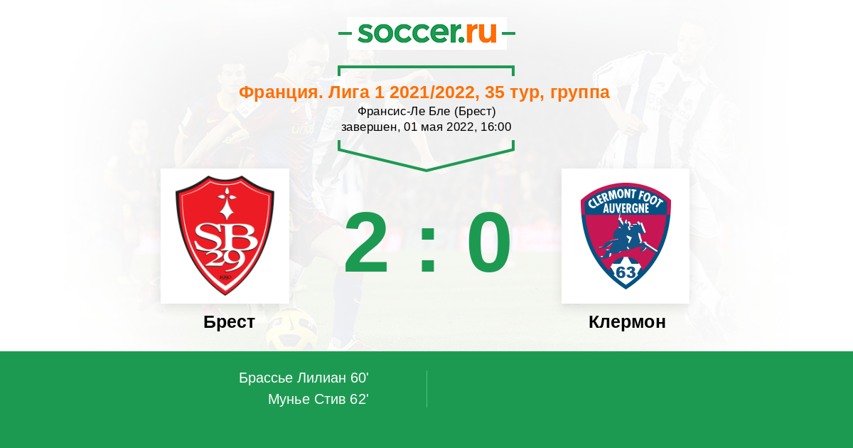 В этом матче мы отдадим предпочтение гостям – «Клермон» в опасной зоне, что станет лучшей турнирной мотивацией. Кроме того, «сине-красные» достаточно уверенно выступают именно на выезде. Предполагаем, что «Брест» не устоит.