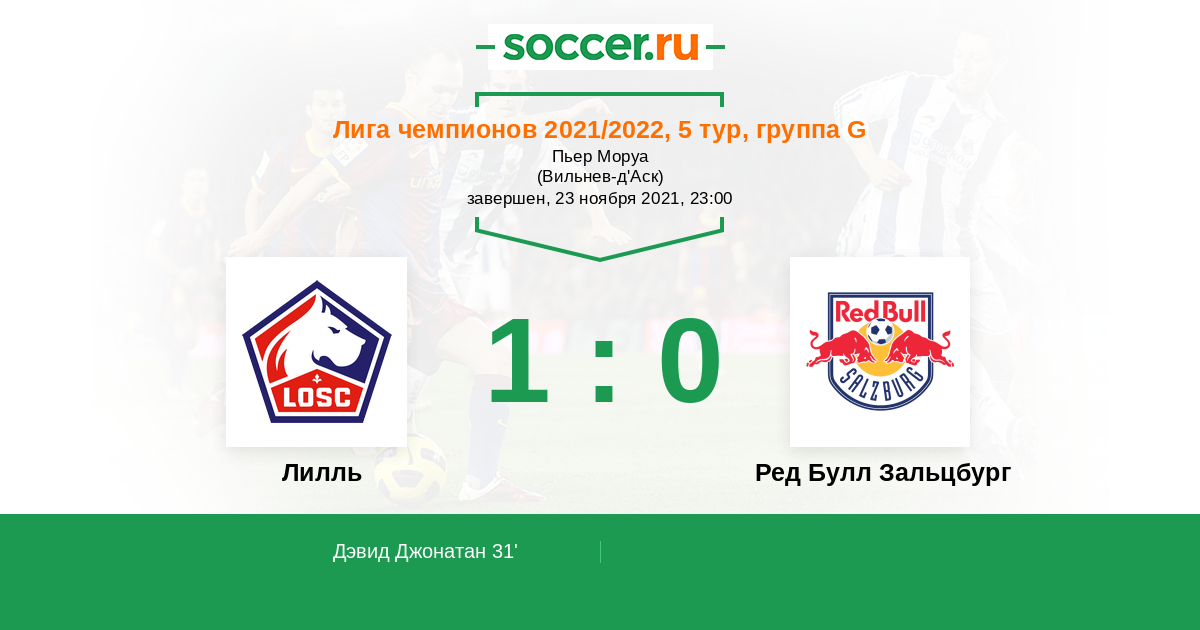 У "Ред Булла" в последних матчах наметились некоторые проблемы с реализацией, но в составе зальцбургцев есть игроки, которые способны с этой проблемой справиться ― в первую очередь, речь об успевшем привлечь внимание многих европейских топов Кариме Адейеми и набравшем очень хорошую форму Ноа Окафоре. У "Лилля", впрочем, тоже есть забивной форвард, способный составить конкуренцию Адейеми и Окафору: лучший бомбардир Лиги 1 Джонатан Дэвид продолжает впечатлять результативностью.