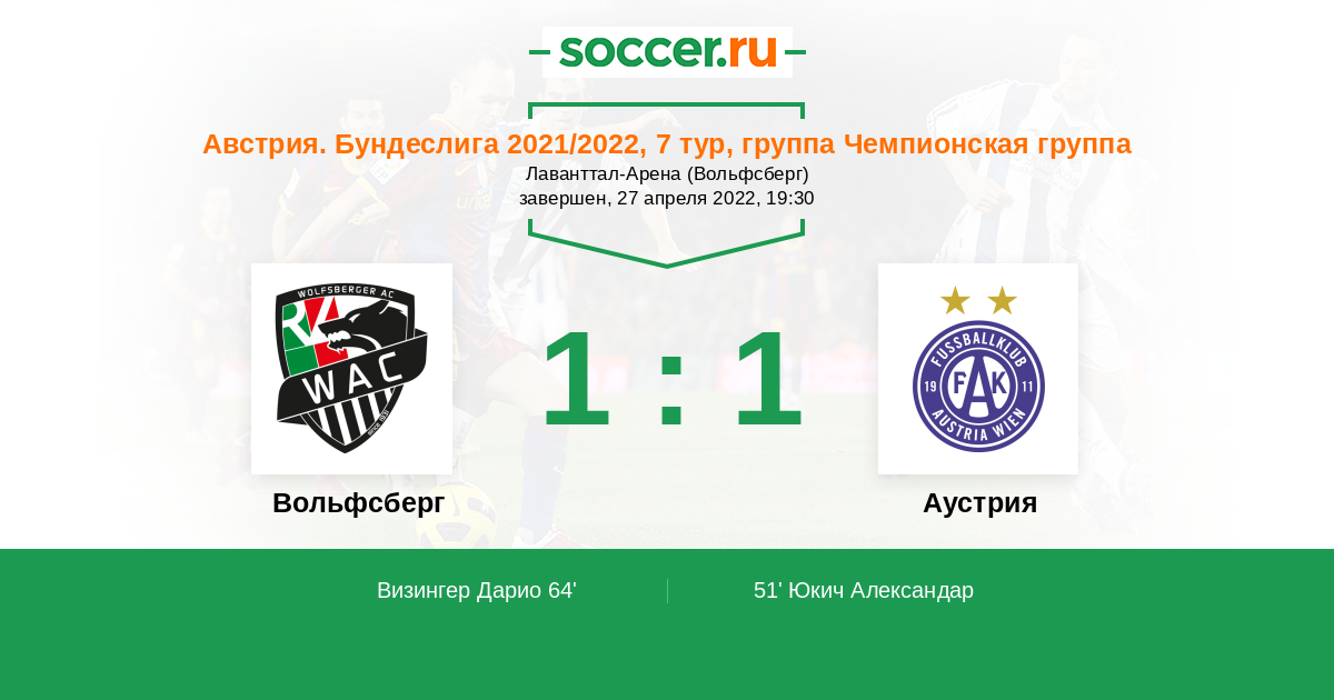 «Вольфсбергер» сейчас располагается на пятой строчке в чемпионате с 21-м баллом в активе. Клуб отстает от соперников выше на несколько очков. Так что, при удачном стечении обстоятельств, команда Романа Стары могла бы подняться в топ-3. Хотя еще недавно «Вольфсбергер» шел на серии поражений, которая прервалась только в последнем туре - победой над «Аустрией» Клагенфурт (3:2).
