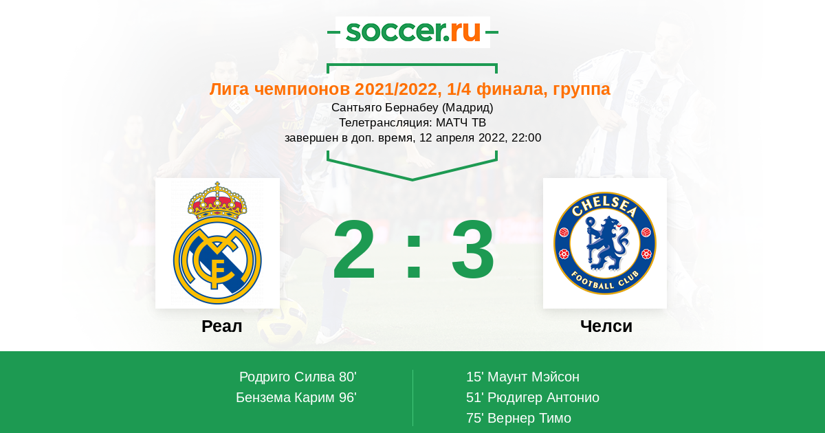 «Челси», в свою очередь, приедет на «Сантьяго Бернабеу» не просто побеждать, а делать это крупно. После домашнего поражения «аристократам» необходимо минимум два мяча для прохода в следующую стадию. Очевидно, команда Томаса Тухеля не будет отсиживаться в обороне, а предпочтёт атакующую схему игры.