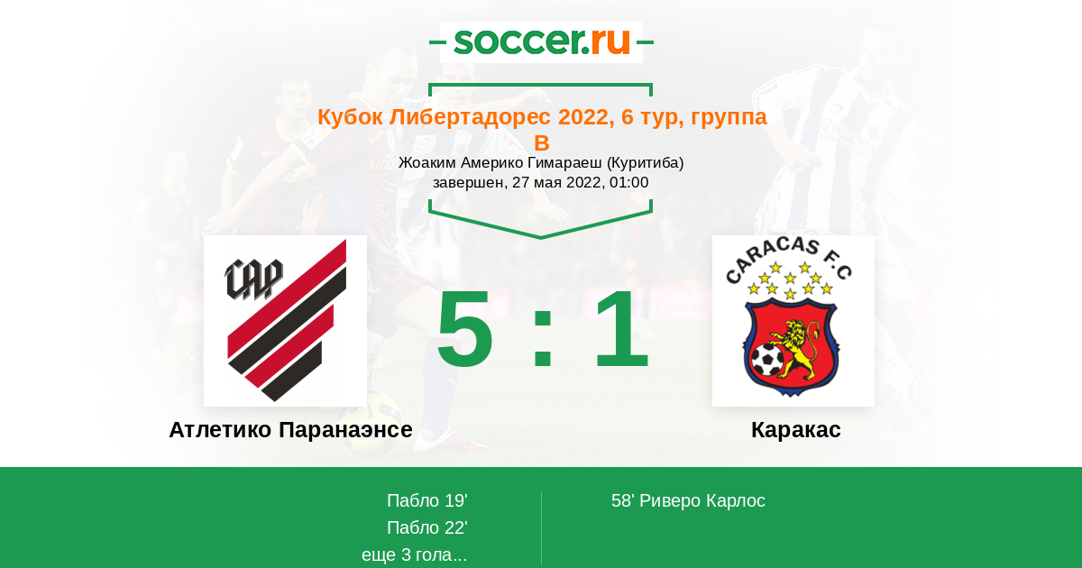 В сегодняшней в игре на кубок Либертадорес "Атлетико" Паранаэнсе сыграет с клубом "Каракас". В этом матче предпочтение будет на стороне хозяев поля, которые дома играют очень уверенно. Кроме того, статистика очных встреч и класс игроков на стороне бразильского клуба. Скорее всего что сегодня хозяева поединка не будут иметь проблем и сумеют навязать свой футбол, что принесет им уверенную победу. В этом противостоянии оба клуба пойдут вперед, ведь других вариантов у соперников нет, что должно позволить командам пробить тотал больше 2,5 в этом матче. Удачи