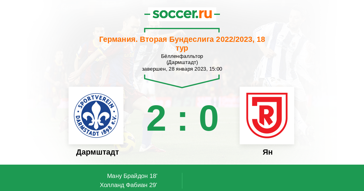 Я думаю что в этом противостоянии более чем явным фаворитом на победу является команда хозяев поля Дармштадт . Команда хозяев поля является лидером второй Бундеслиги и борется за попадание в лигу 1 и наврядли будет терять очки с командой из нижней части турнирной таблицы.
