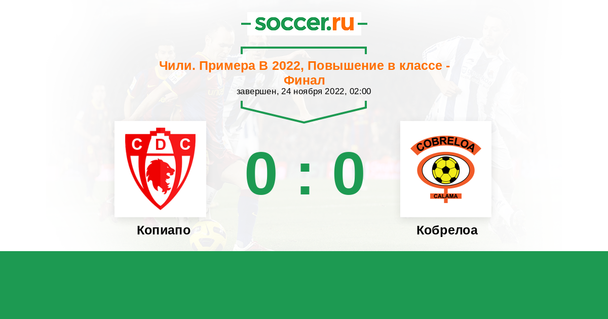 Я думаю что в этом противостоянии более чем явным фаворитом на победу является команда хозяев поля Копиапо . Команда гостей Кобрелоа хотя и является соседом по турнирной таблице и находится на втором месте, но в гостевых матчах играет не совсем убедительно , чем должны воспользоваться хозяева поля .