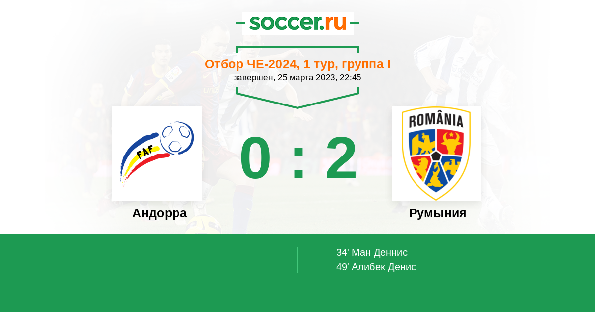 Сегодня встречаются две хорошо знакомые друг другу команды. Матчи с Румынией для Андорры складываются крайне неудачно. Все 4 матча были проиграны, почти все с крупным счетом. Но свой гол хозяева забьют....