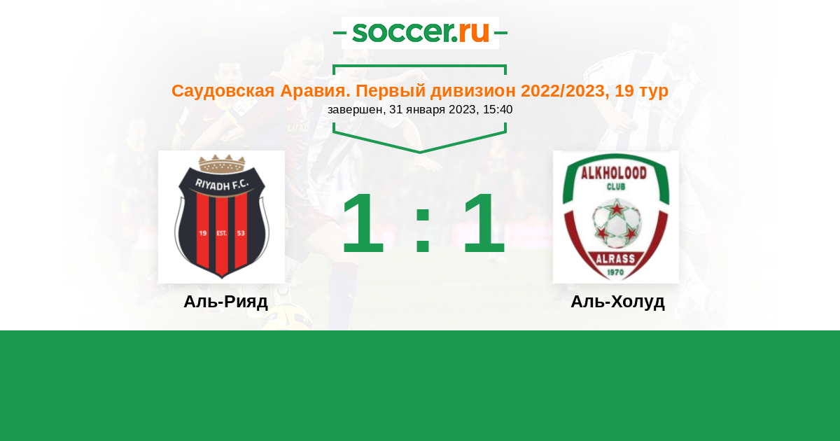 Весьма большая дилема в выборе победителя: Аль-Рияд много забивает и много пропускает, Аль-Холуд, наоборот мало забивает и еще меньше пропускает... Фактор своего поля все же должен сказаться и принести победу Аль-Рияду, наверное 2-1.