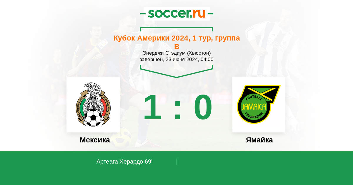 Мексиканцы традиционно одни из главных фаворитов на пьедестал в кубке Америке. Матч против Ямайке не должен стать серьёзной проблемой для мексиканцев. Пожалуй что не стоит ждать тут яркую викторию от "зелёных" но на классе 1:0, 2:0 номинальные хозяева победить способны. Ямайка против больших соперников по континенту редко когда что-то толковое показывают. Моя ставка: П1.