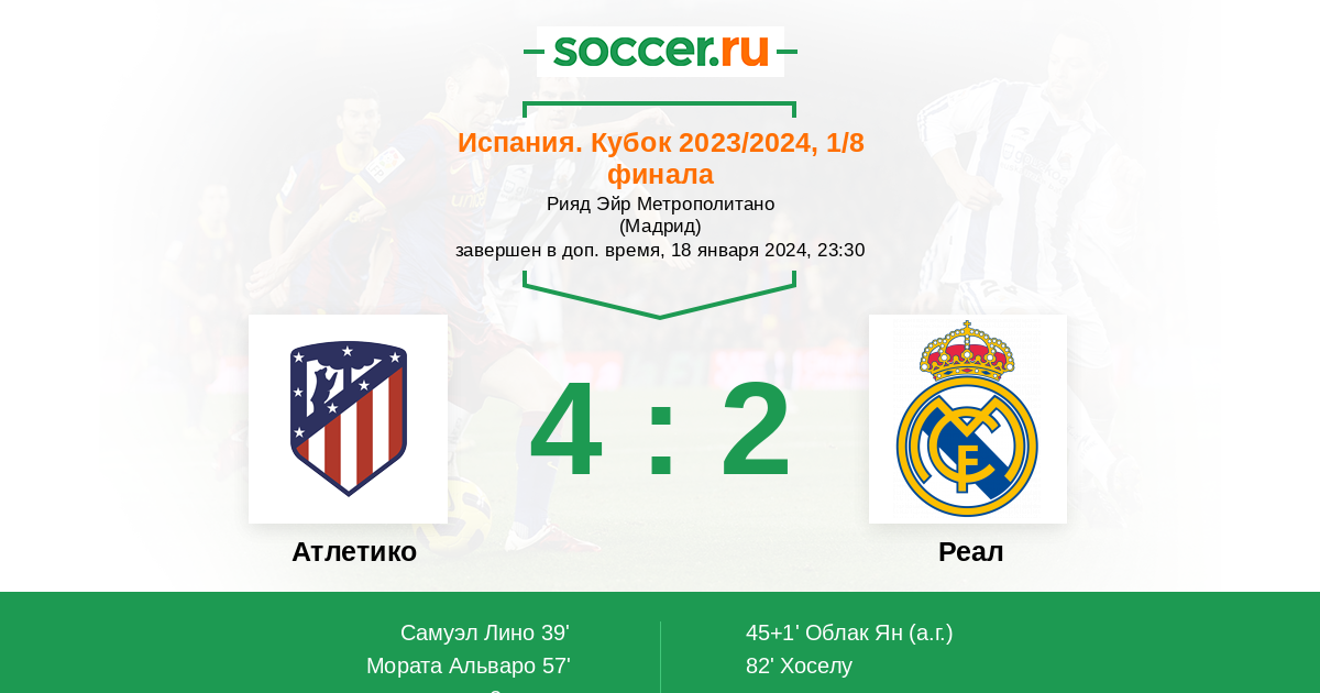 Атлетико недавно уже играли с Реалом и проиграли им. Я считаю, что в том матче Атлетико выложился на все 100% чтобы победить, но даже так у них не получилось обыграть Реал Мадрид.