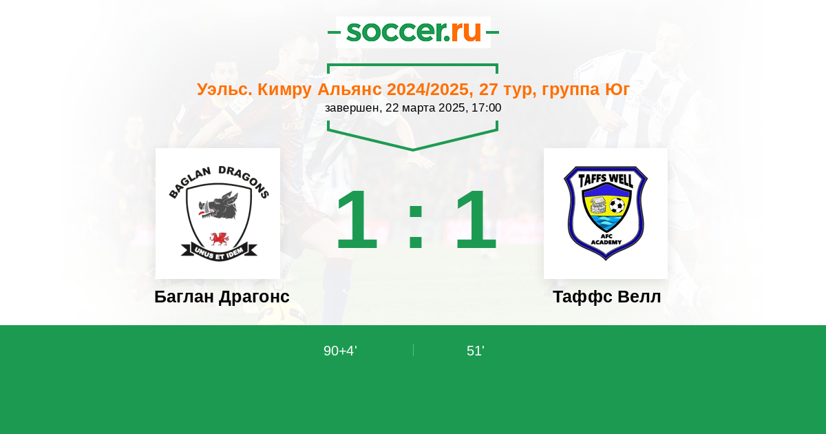 Баглан Драгонс - Таффс Велл ! Думаю хозяева поля не упустят такой возможности " насовать " по больше голов сег . соперникам . Ведь к ним едет глубокий аутсайдер .