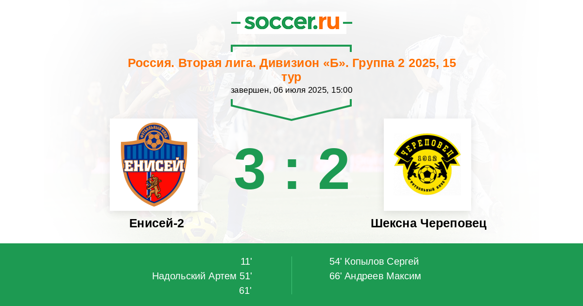 Енисей-2 - Шексна Череповец
