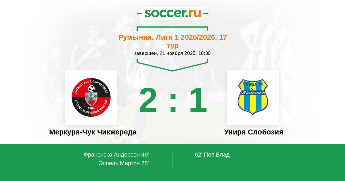 Меркуря-Чук Чикжереда - Униря Слобозия