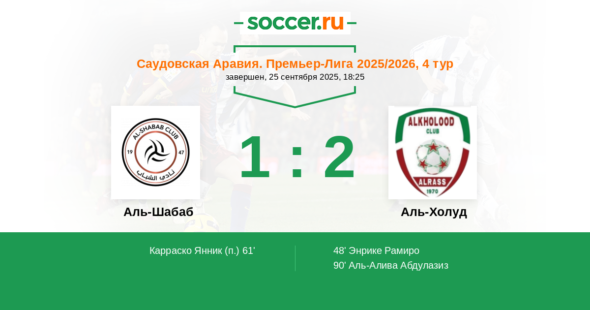 В предстоящем матче 4 - го тура Премьер-Лиги Саудовской Аравии между командами Аль-Шабаб и Аль-Холуд , моим фаворитом на победу является команда хозяев Аль-Шабаб , так как они играют дома