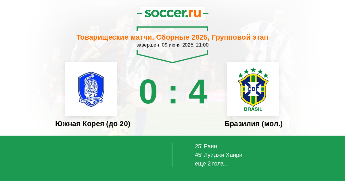 Южная Корея (до 20) - Бразилия (мол.)