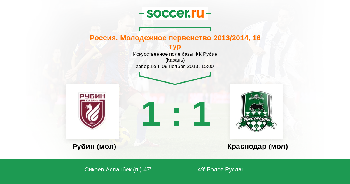 Рубин (мол) - Краснодар (мол)