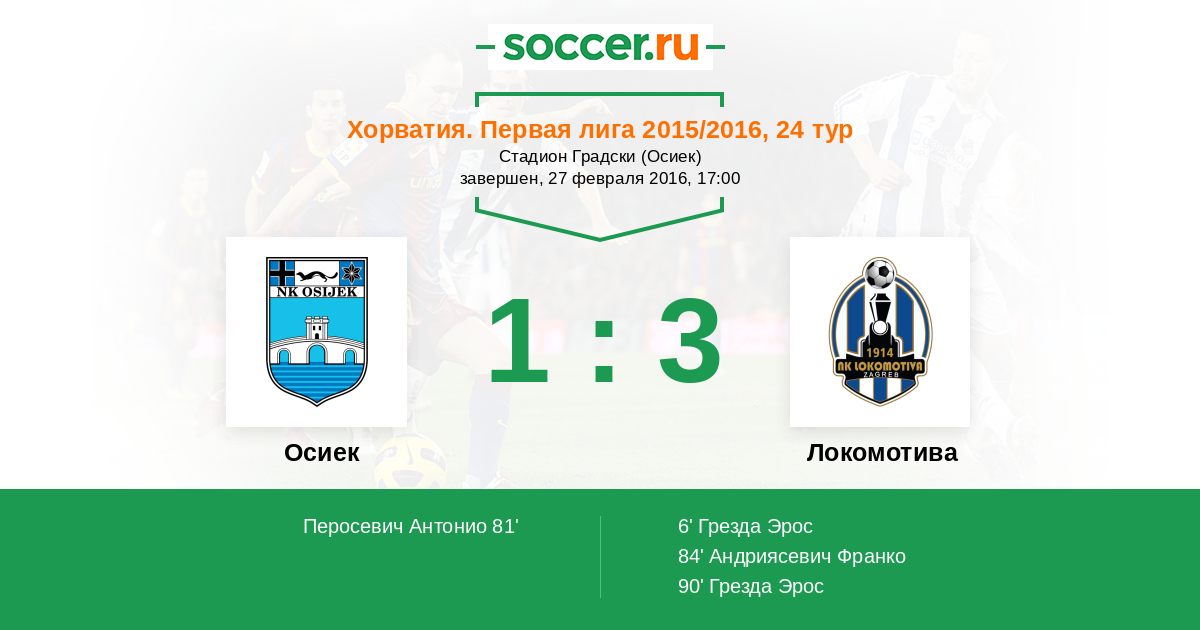 | Осиек | Локомотива | |