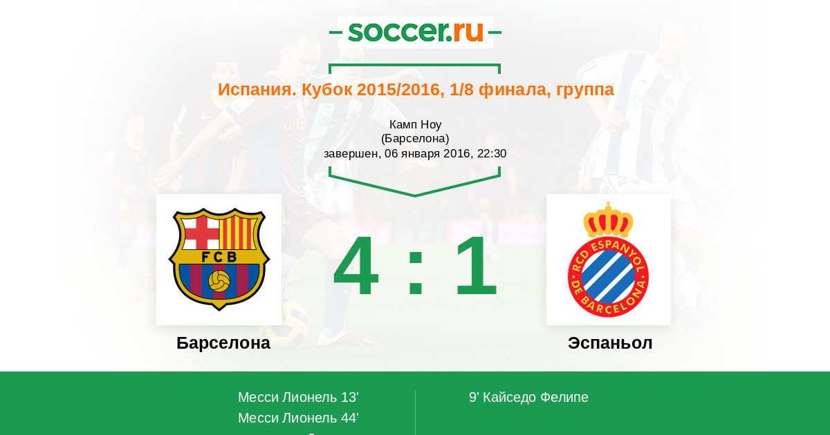 | Эспаньол | 38:121 | 23:50 | 15:71 |