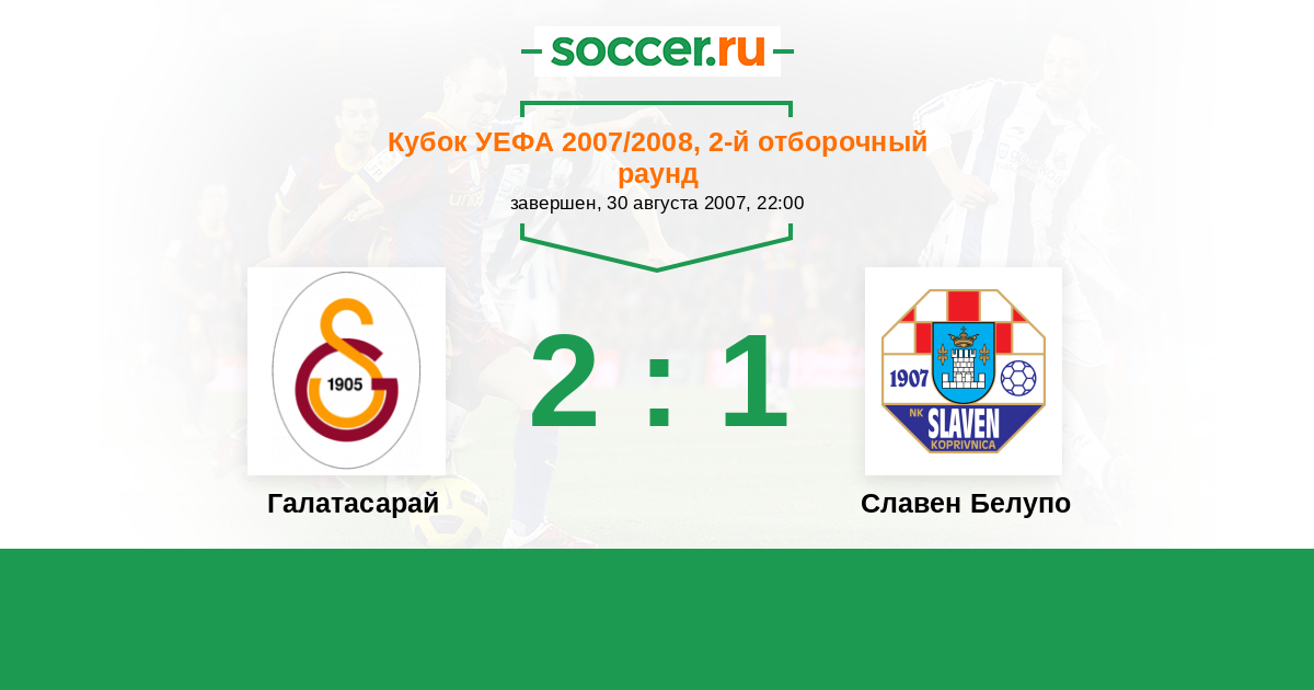 | Галатасарай | 2:1 | 0:0 | 2:1 |